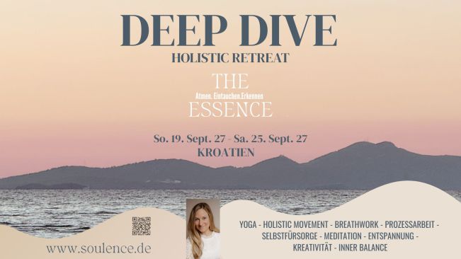 Unser "Deep Dive" Retreat auf einer malerischen Insel in Kroatien bietet dir die perfekte Gelegenheit, dich mit dir selbst zu verbinden. Umgeben von der atemberaubenden Schönheit des Meeres und der Natur, tauchst du in die Welt der Atmung, des Erkennens und des Wachstums ein.