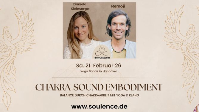 Dieser tiefgehende Workshop führt dich in die innere Balance und energetisiert deine Chakren mit der Kraft von Klängen und achtsamer Yogapraxis. Klangkünstler Remoji (CH) und Yogalehrerin Daniela Kleinsorge begleiten dich auf einer einzigartigen Reise die Körper, Geist und Energiezentren liebevoll in Einklang bringt.